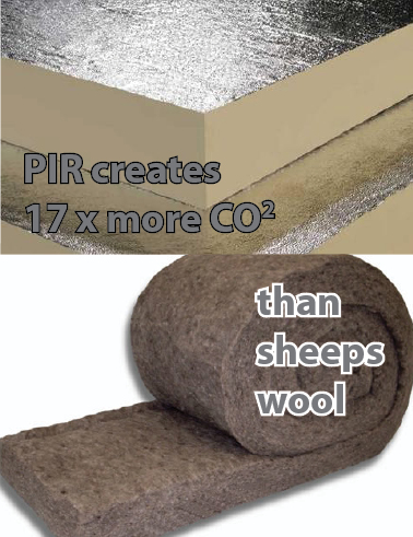 Secondly, not all insulation is environmentally equal. One of the most common, readily available insulations, is something called PIR – or polyisocyanurate. It is a very high performance material and there are occasions when its use is justified, but it produces about 17 times more CO2 during manufacture than a renewable insulation such as sheeps wool.